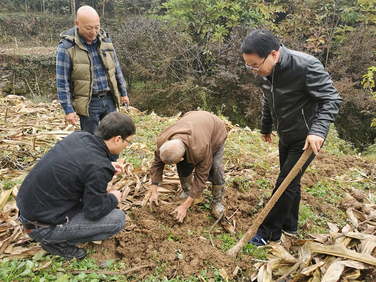 同時(shí)調(diào)研指導(dǎo)組對(duì)我院選育的魔芋新品種“安魔128”在不同海拔、不同示范點(diǎn)的表現(xiàn)情況進(jìn)行考察。在田間,張百忍同科研人員一起扛起鋤頭,現(xiàn)場(chǎng)采挖“安魔128”,詳細(xì)統(tǒng)計(jì)測(cè)算該品種的產(chǎn)量情況。調(diào)查發(fā)現(xiàn)“安魔128”在不同示范點(diǎn)均表現(xiàn)出明顯的品種優(yōu)勢(shì),較花魔芋具有抗病性強(qiáng)、繁育系數(shù)高等特點(diǎn)。企業(yè)及各縣區(qū)農(nóng)業(yè)部門負(fù)責(zé)人紛紛表示要加大對(duì)該品種的引進(jìn)與示范,加快魔芋產(chǎn)業(yè)健康快速發(fā)展。