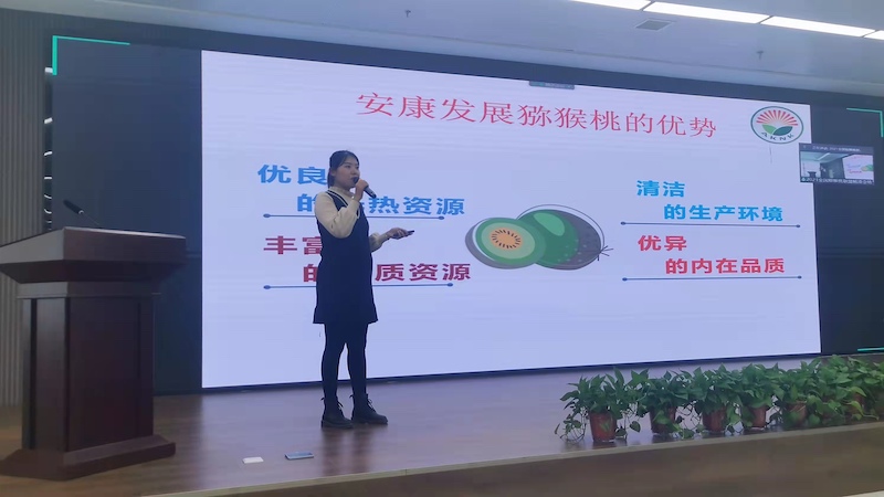 來(lái)自不同省份的五名代表向大會(huì)作學(xué)術(shù)報(bào)告,張文慧就“安康獼猴桃產(chǎn)業(yè)發(fā)展”進(jìn)行報(bào)告與交流。報(bào)告從產(chǎn)業(yè)發(fā)展現(xiàn)狀、科研工作進(jìn)展等方面展示了獼猴桃這一新興產(chǎn)業(yè)在安康的發(fā)展與前景。與會(huì)專(zhuān)家認(rèn)為安康具備發(fā)展優(yōu)質(zhì)獼猴桃的自然條件、技術(shù)基礎(chǔ)和政策優(yōu)勢(shì),建議要搶抓機(jī)遇、大力發(fā)展,將安康建設(shè)為陜西高端獼猴桃生產(chǎn)基地。