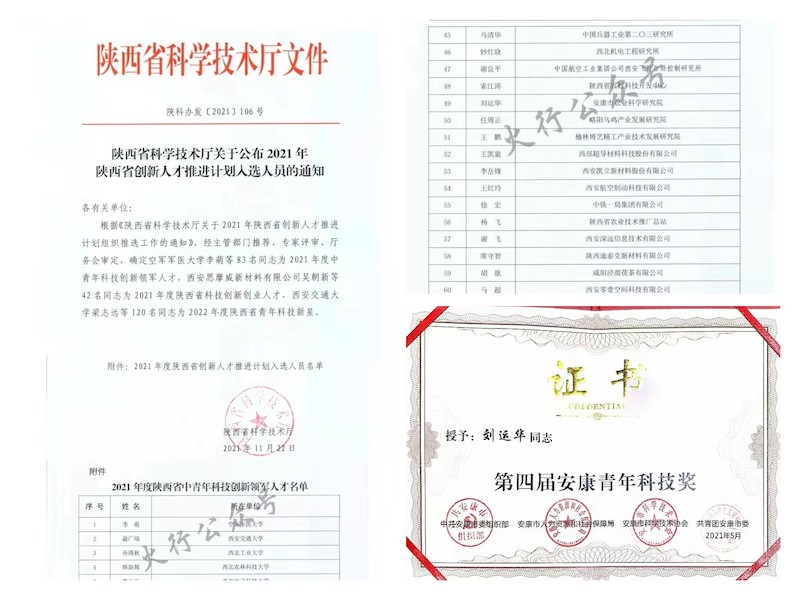 2021年,榮獲陜西省中青年科技創(chuàng)新領軍人才1人、安康市第四屆青年科技獎2人。