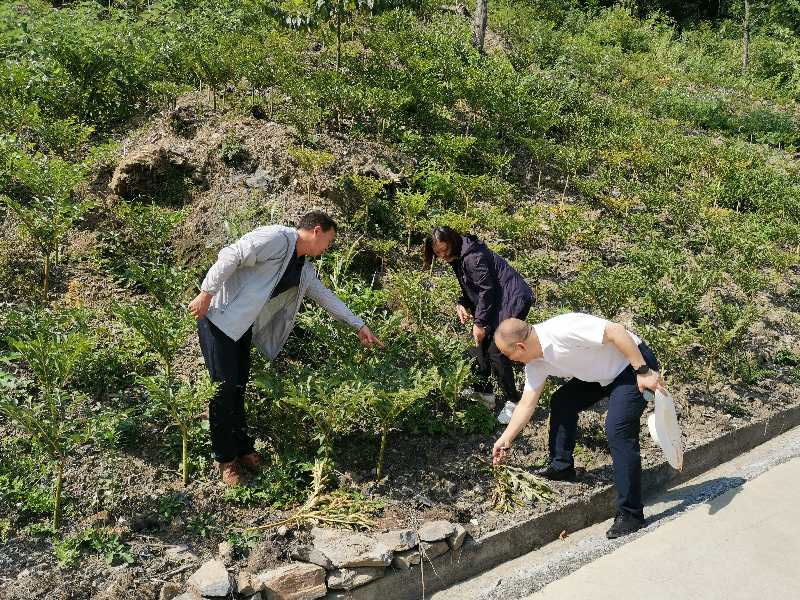 郭邦利一行在陜西兄弟魔芋總經(jīng)理?xiàng)詈坪椭x坪村駐村第一書(shū)記汪道軒的陪同下,實(shí)地查看了種植基地魔芋生長(zhǎng)及病害發(fā)生情況。入夏以來(lái)的持續(xù)高溫少雨,導(dǎo)致正值魔芋球莖膨大期受到了嚴(yán)重的影響。郭邦利針對(duì)園區(qū)魔芋種植中存在的問(wèn)題,認(rèn)真分析并給與了合理化的建議,就品種不純、病害防控、栽培模式、遮陰方式、魔芋中后期管理及采收貯藏等環(huán)節(jié)給與了技術(shù)指導(dǎo)。