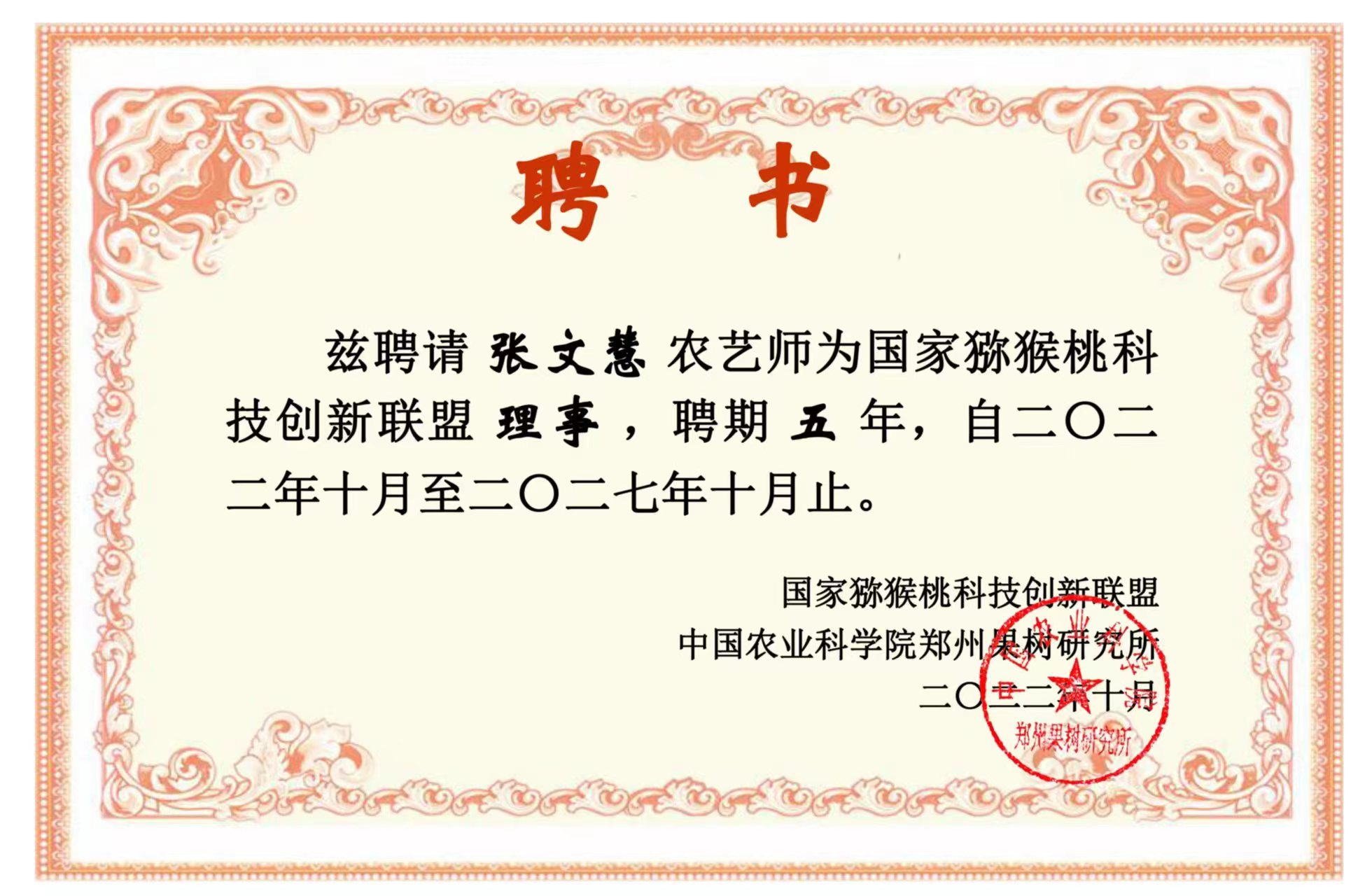 10月9日,“國家獼猴桃科技創(chuàng)新聯(lián)盟2022年年會(huì)暨獼猴桃高效育種技術(shù)研討會(huì)”以線上線下相結(jié)合的方式召開。大會(huì)以在線無記名投票方式進(jìn)行了聯(lián)盟換屆選舉,產(chǎn)生了第二屆理事會(huì)成員名單。安康市農(nóng)科院被認(rèn)定為聯(lián)盟第二屆理事單位,張文慧當(dāng)選為聯(lián)盟理事。