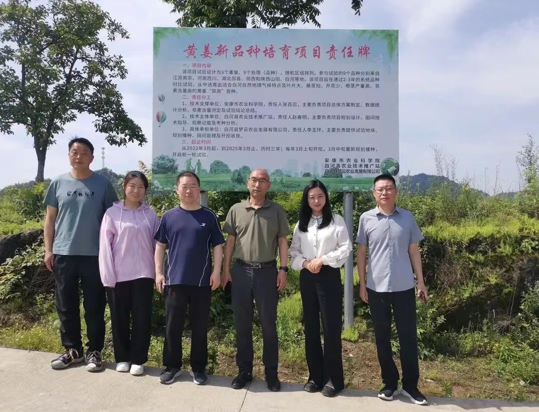 在白河縣城關(guān)鎮(zhèn)中營(yíng)村黃姜新品種培育基地,周高新一行實(shí)地查看了黃姜參試品系及引進(jìn)新品種生長(zhǎng)情況,與技術(shù)負(fù)責(zé)人就規(guī)范田間記錄、科學(xué)管理等方面進(jìn)行了詳細(xì)交流,并提出了指導(dǎo)性建議。該項(xiàng)目是市農(nóng)科院與白河縣農(nóng)業(yè)技術(shù)推廣站、白河縣夢(mèng)云農(nóng)業(yè)發(fā)展有限公司簽訂的院企合作項(xiàng)目,旨在選育出產(chǎn)量高、皂素高的“雙高”黃姜良種,為推進(jìn)白河縣中藥材產(chǎn)業(yè)發(fā)展提供技術(shù)支持。目前,項(xiàng)目組分別在白河縣城關(guān)鎮(zhèn)和市農(nóng)科院建立品種選育基地2個(gè),收集來(lái)自全國(guó)各地的黃姜種質(zhì)資源450余份。