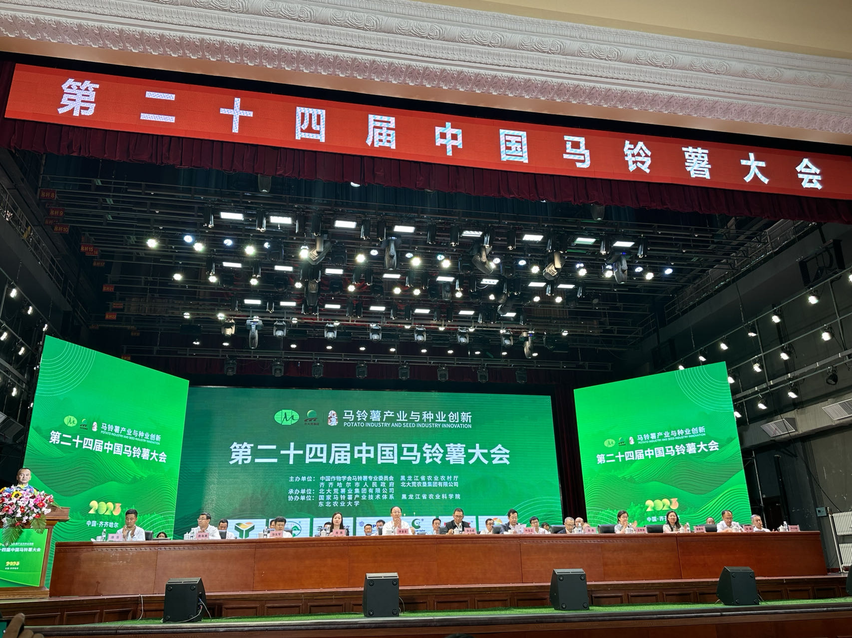 7月16日,由中國作物學(xué)會馬鈴薯專業(yè)委員會、黑龍江省農(nóng)業(yè)農(nóng)村廳、齊齊哈爾市人民政府、北大荒農(nóng)墾集團(tuán)有限公司主辦,北大荒薯業(yè)集團(tuán)承辦的“第二十四屆中國馬鈴薯大會”在黑龍江省齊齊哈爾市舉辦。來自全國31個省、自治區(qū)、直轄市的1200余名專家學(xué)者、政府代表和企業(yè)家參加本屆大會,市農(nóng)科院馬鈴薯育種專家蒲正斌及團(tuán)隊參加了大會。