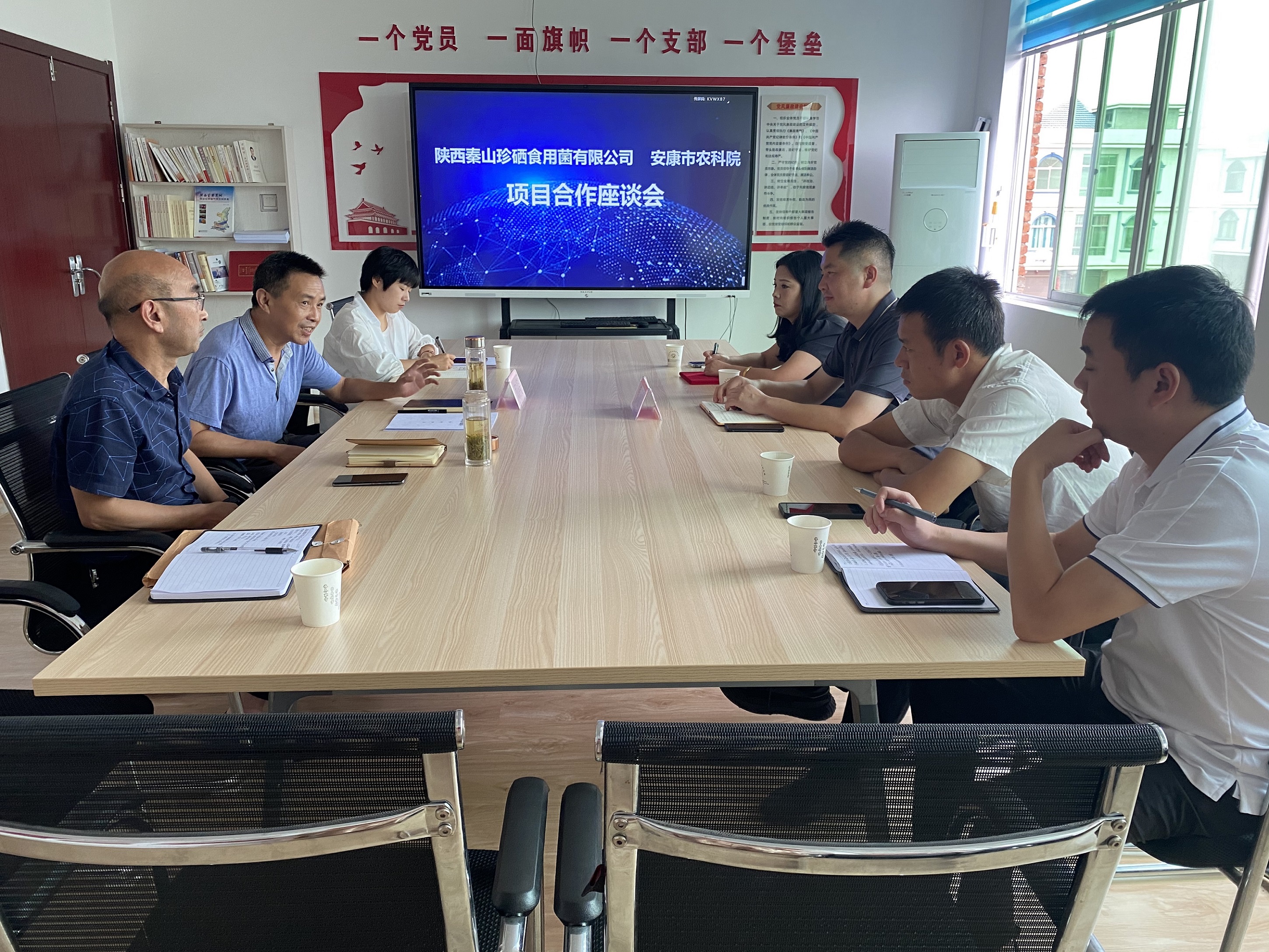 8月29日,陜西秦山珍硒食用菌有限公司董事長余功軍一行來市農(nóng)科院尋求技術(shù)與人才支持,并在市農(nóng)科院召開座談會。市農(nóng)科院黨委副書記謝勇、副院長周高新及食用菌研究所科研人員參加了座談。