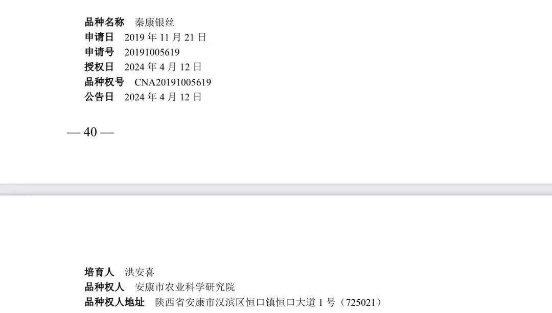 安康市農(nóng)科院選育的水稻品種“秦康銀絲”獲國家植物新品種權(quán)
