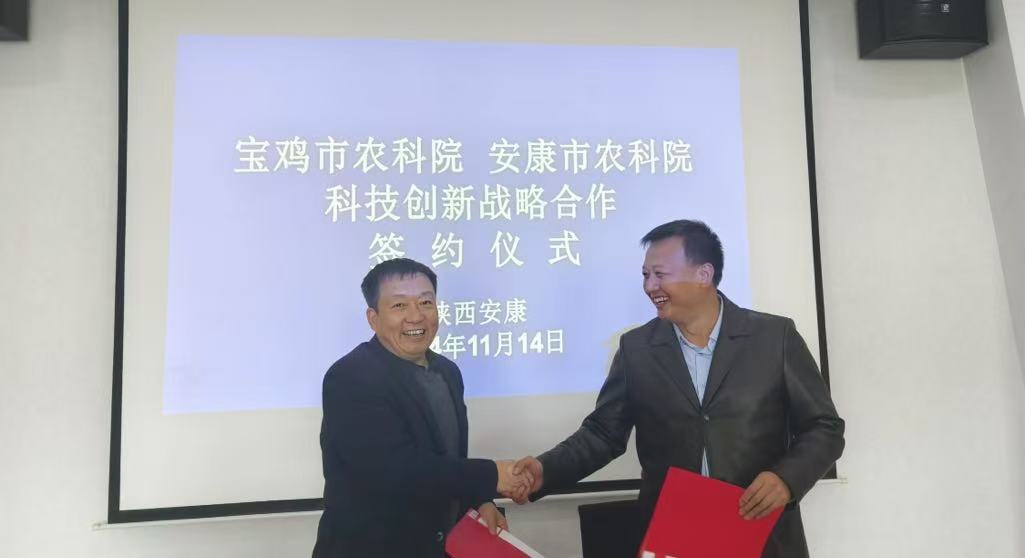 11月14日,安康市農(nóng)業(yè)科學(xué)研究院與寶雞市農(nóng)業(yè)科學(xué)研究院在安康簽訂戰(zhàn)略合作協(xié)議。安康市農(nóng)業(yè)科學(xué)研究院院長晏筱波、寶雞市農(nóng)業(yè)科學(xué)研究院院長王周玉參加簽約式。