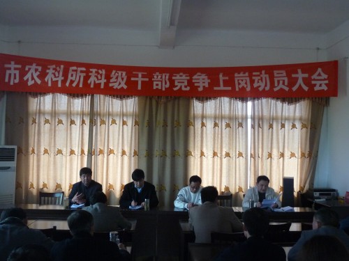 市農(nóng)科所3月29日下午召開了市農(nóng)科所科級干部競爭上崗動員大會,所長張百忍主持大會,農(nóng)業(yè)局副局長市農(nóng)科所黨委書記郭達彥、副所長楊德定、劉繼瑞及農(nóng)科所全體職工參加了大會。