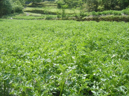 5月8日,我所專家組在劉繼瑞副所長的帶領下,匯同縣農技中心,銅錢關鎮(zhèn)政府主要領導前往示范基地,走村入戶,田間地頭實地查看馬鈴薯生長情況。目前整個高產示范項目區(qū)內馬鈴薯已開花現(xiàn)蕾、長勢喜人。前不久省農技總站領導在對全省項目檢查時,專程前往該地進行檢查,給予高度評價,并一致認為,馬鈴薯種植集中連片,密度合理,出苗整齊、長勢良好。并對這種所、企合作模式給予極大的鼓勵。