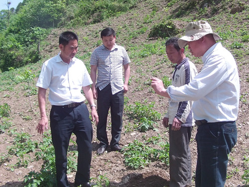 5月20至26日,市農(nóng)科所副所長(zhǎng)徐家彥、馬鈴薯專家蒲正斌、漢濱區(qū)農(nóng)技中心課題組人員一行來(lái)到漢濱區(qū)茨溝鎮(zhèn)王莽村、石泉縣迎風(fēng)鎮(zhèn)三灣村市農(nóng)科所的秦芋32號(hào)脫毒馬鈴薯原種布點(diǎn)試驗(yàn)基地,查看開(kāi)春種植的秦芋32號(hào)脫毒原原種出苗、田間長(zhǎng)勢(shì)、田間管理等情況,并詳細(xì)為試驗(yàn)地農(nóng)戶對(duì)原原種出苗、整齊度等問(wèn)題做了耐心講解。