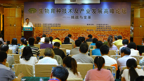 為響應(yīng)中央一號(hào)文件精神,推動(dòng)農(nóng)業(yè)科技創(chuàng)新,探討國內(nèi)外生物育種技術(shù)研究現(xiàn)狀、發(fā)展前景及安全問題,促進(jìn)我國生物育種技術(shù)產(chǎn)業(yè)化發(fā)展,2015529—31日在京舉辦了“生物育種技術(shù)及產(chǎn)業(yè)發(fā)展高峰論壇”(以下簡稱論壇)。我國農(nóng)業(yè)生物技術(shù)領(lǐng)域的著名專家翟虎渠、沈貴銀、喻樹迅、張愛民、朱禎等參會(huì),來自相關(guān)管理部門、科研院校、孟山都、華大基因等著名企業(yè)的專家和科技人員共500多人參加了本次論壇。我所選派科研人員鄭甲成參會(huì)。