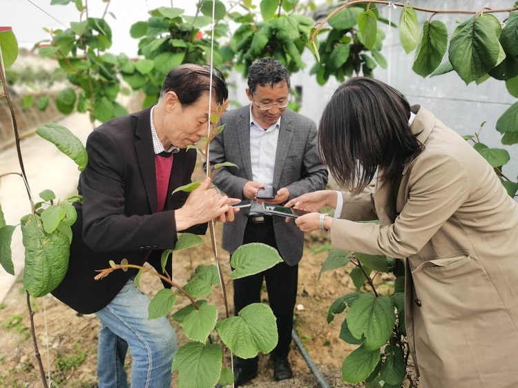 評審會后,陜西省獼猴桃首席科學家劉占德、西北農林科技大學教授安成立及博士后劉艷飛三人來我院參觀了獼猴桃園區(qū)建設情況,對我院的獼猴桃科研工作給予了充分肯定,并表示后期應加大雙方合作,共同推進獼猴桃產業(yè)發(fā)展。