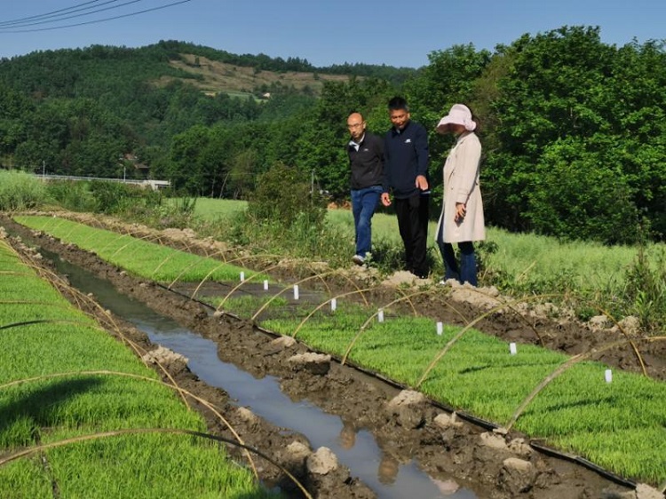 4月27日,安康市農(nóng)科院副院長周高新帶領(lǐng)水稻專家團隊,前往石泉縣隆興富硒糧油生產(chǎn)專業(yè)合作社,現(xiàn)場培訓(xùn)指導(dǎo)水稻輕簡化直播技術(shù)。