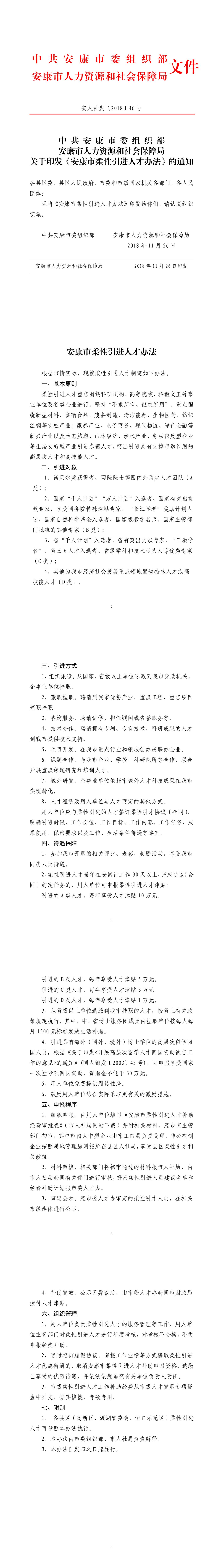關于印發(fā)《安康市柔性引進人才辦法》的通知