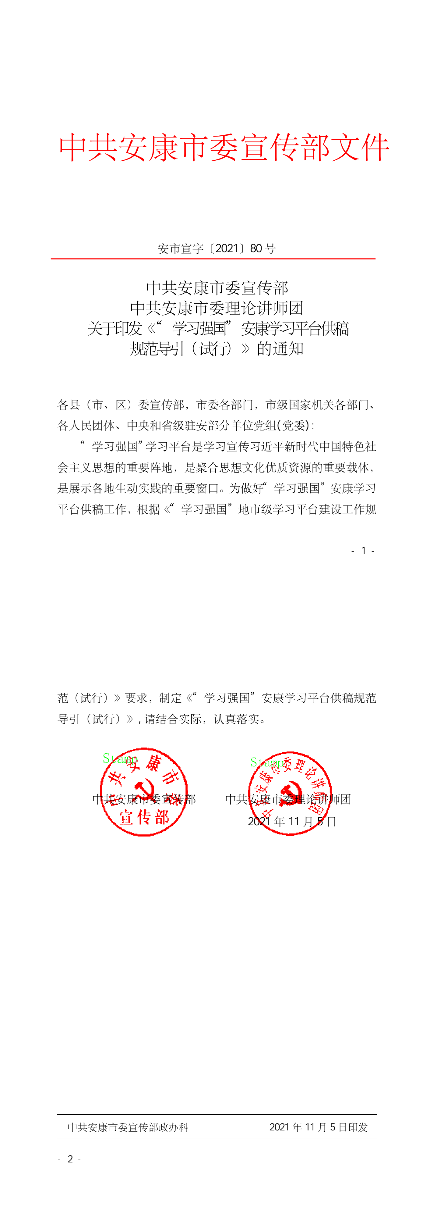 關(guān)于印發(fā)《“學(xué)習(xí)強(qiáng)國”安康學(xué)習(xí)平臺(tái)供稿 規(guī)范導(dǎo)引(試行)》的通知