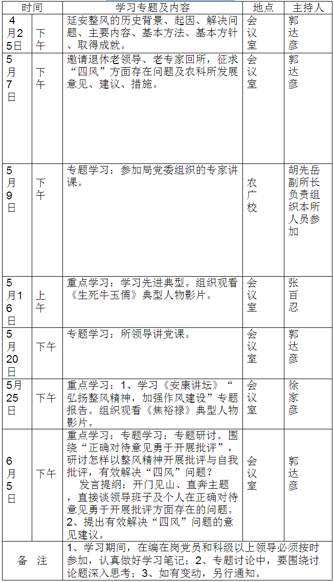 附:工共安康市農(nóng)科所委員會黨的群眾路線教育實踐活動重點學習、專題學習安排表