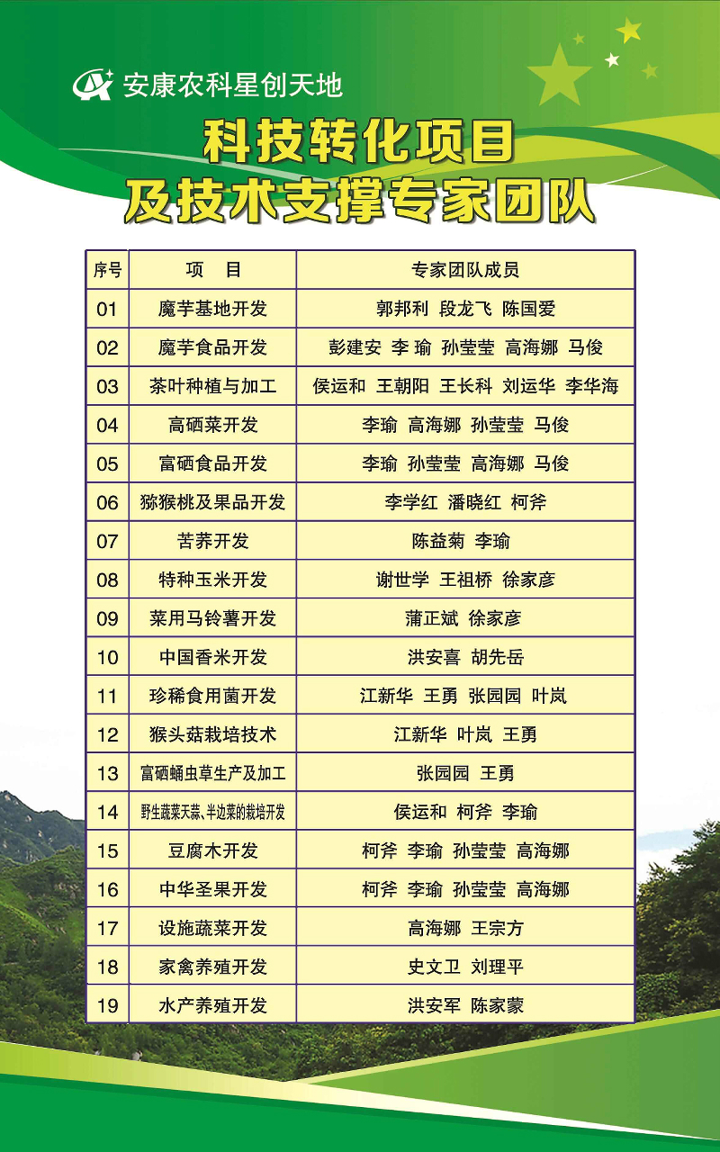 安康市農(nóng)業(yè)科學(xué)研究院現(xiàn)在職人員60人,其中研究員2人,高級農(nóng)藝師12人,農(nóng)藝師14人,碩士研究生16人,享受國務(wù)院特殊津貼專家、省市突貢專家等4人,全國勞動模范1人,“陜西省現(xiàn)代魔芋產(chǎn)業(yè)技術(shù)體系”首席科學(xué)家1名,魔芋、馬鈴薯、茶葉、食用菌、雜糧、玉米等產(chǎn)業(yè)技術(shù)體系崗位專家16人,科研能力較強。單位下設(shè)薯類作物、糧油作物、茶葉、食用菌、果蔬、農(nóng)產(chǎn)品加工等6個研究所,極具... 更多>>